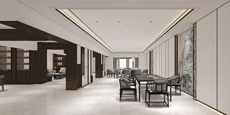 項目整體面貌開(kāi)敞直觀(guān)、空明澄澈,體現了典雅內斂,沉穩大氣的東方氣韻??臻g的樸質(zhì)藝術(shù)性,是設計師追求的一種設計氣質(zhì)。簡(jiǎn)約的中式辦公家具和東方元素,呈現了莊重高檔的質(zhì)感及沉穩內斂的東方氣質(zhì)。適當的空間留白, 設計師用東方式精神的詩(shī)意,清雅與高遠,呈現簡(jiǎn)潔雅致的當代美學(xué)質(zhì)感,于空間中營(yíng)造和諧舒適的人文體驗。木的形態(tài)與石的肌理相互照應,濃縮了東方元素對自然的表達,于簡(jiǎn)潔中而不失尊貴。大基調的人文色彩與靜雅氣質(zhì),流動(dòng)卻又靜美。
